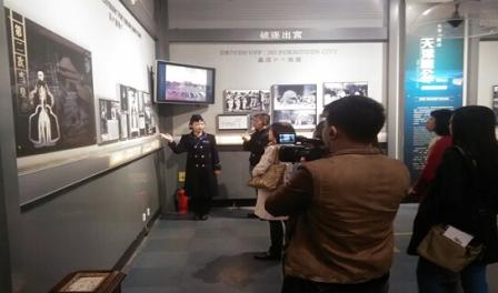人民網(wǎng)“尋找歷史記憶 緬懷抗戰(zhàn)英烈”采訪團(tuán)成員在長(zhǎng)春偽滿(mǎn)皇宮博物院采訪。