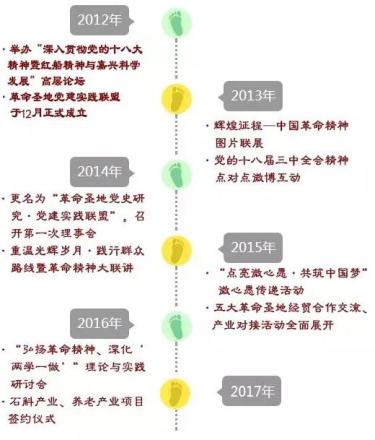2012年12月,在嘉興、井岡山、遵義、延安、石家莊市委組織部的共同倡議和精心策劃下,五地組建成立“革命圣地黨建實踐聯(lián)盟”。2014年,聯(lián)盟更名為“革命圣地黨史研究?黨建實踐聯(lián)盟”,并在中央黨史研究室設立聯(lián)盟聯(lián)絡處。聯(lián)盟自成立以來,已先后舉辦中國革命精神圖片展、群眾路線革命圣地行等大型主題活動。此次現(xiàn)場考察和理論實踐研討活動,五地代表分別就扎實推進“兩學一做”學習教育及黨史研究工作開展了深入交流。