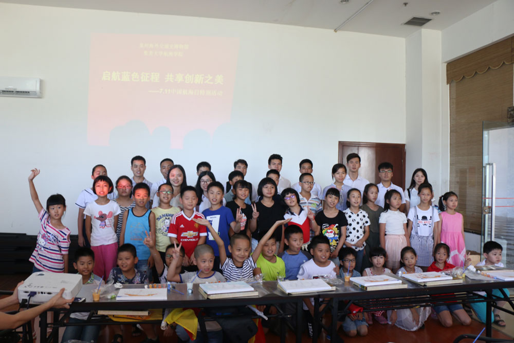 實踐隊與泉州海外交通史博物館共同開展了“啟航藍色征程,共享創(chuàng)新之美——7.11中國航海日”特別活動,向30位小朋友講解航海小知識,介紹古老的旗語和莫爾斯電碼等。“希望我們的航海文化能夠傳播出去,從娃娃抓起” 隊長胡栩禎說。