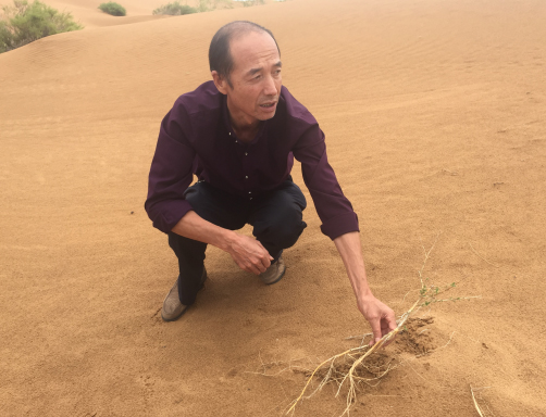 “我們每進(jìn)一步,沙丘就后退一步。現(xiàn)在我們看到的綠色帶,曾經(jīng)都是沙漠!痹谥紊硡^(qū),每一種植物他都如數(shù)家珍。他告訴記者,自己一輩子都在跟沙漠打交道,在探索中他發(fā)明了“便捷式沙漠造林器”。使用這種工具只需腳一踩就能輕松完成種植,以前每人每天種植200株,現(xiàn)在提升為400株,還保持了種子所需的水分。