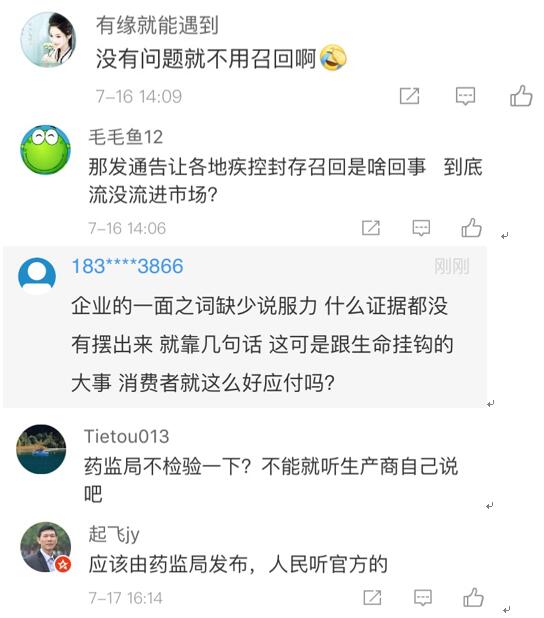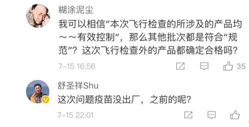 網(wǎng)友“楊O_o小仙兒”表示:“只想知道這個(gè)造假帶來的后果是什么?是之前接種過這個(gè)批次的都沒有藥效還是怎樣?有關(guān)部門能不能說清楚,這可是人命關(guān)天的事,不要這樣含糊其辭!